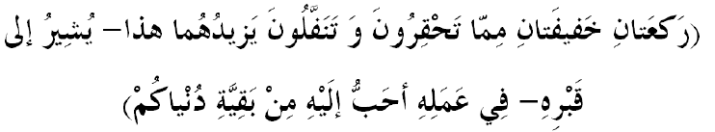 << Two light rak`ahs, which you would regard as being something slight, and which you pray as something extra; if he- and he pointed to his grave- were able to add them to his deeds it would be more beloved to him than (having) everything in your world. >>’